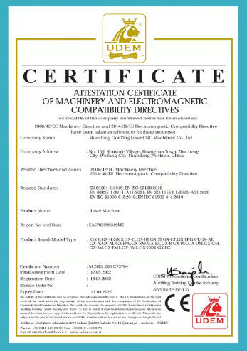 • 中国 Shandong Gonxing Laser Cnc Machinery Co., Ltd. 認証